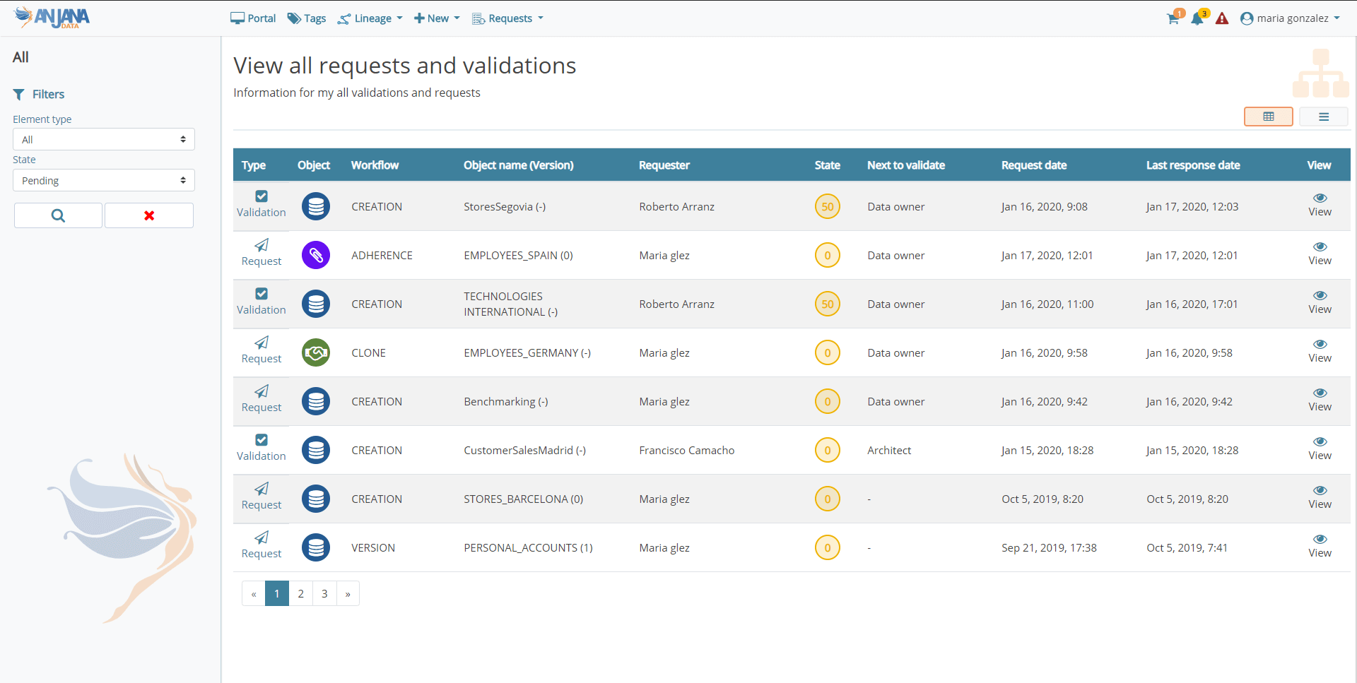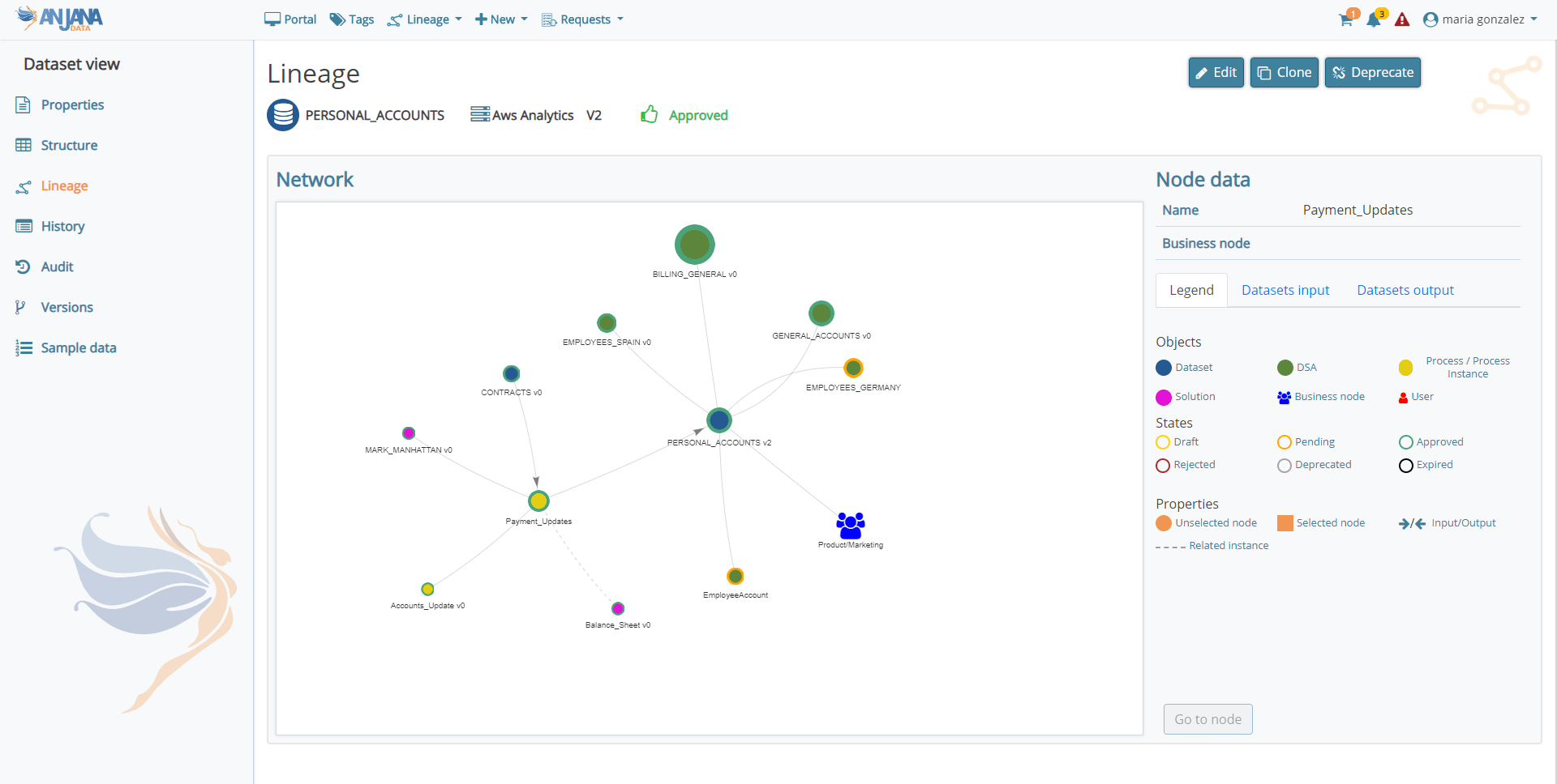 With the premise of delivering a version that is easy to use and fulfills the function of being the central solution for data governance in an organization, Anjana Data presents improvements in the user experience and interface through substantial changes in different screens of the application such as the Data Portal, the detail views of the objects, the lineage graphs, the management of the workflows and the Administration Panel.