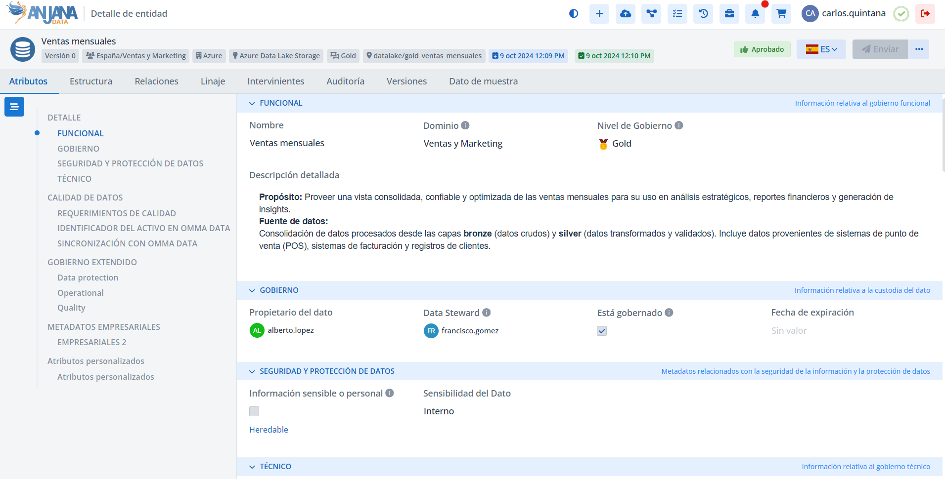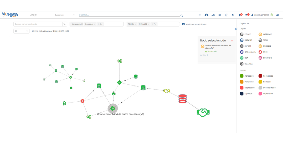 Anjana Data es enterprise-ready y cumple estándares como el ENS; integra evidencias de auditoría internas y externas, captura acciones de usuarios y conserva el histórico de cambios para soportar cumplimiento regulatorio y forensic readiness. Esta aproximación facilita alineamientos con frameworks como DAMA, especificaciones UNE de Gobierno/Calidad del Dato, e incluso iniciativas de AI Governance (gestión del ciclo de vida de modelos, evidencias para AI Act), cuando se despliegan los casos de uso correspondientes.